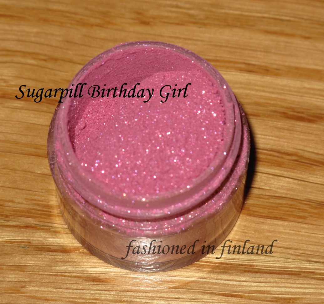 As a color Birthday Girl (new color too) was a huge disappointment to me, unfortunately. I hope it would be lighter but this bright pink, almost fuchsia in my stardard (=I don't like fuchsia). It is lovely but I will never use this one... It would be great on lips but unfortunately it's not lip safe. The base is nearly matte with a lot of shimmer.