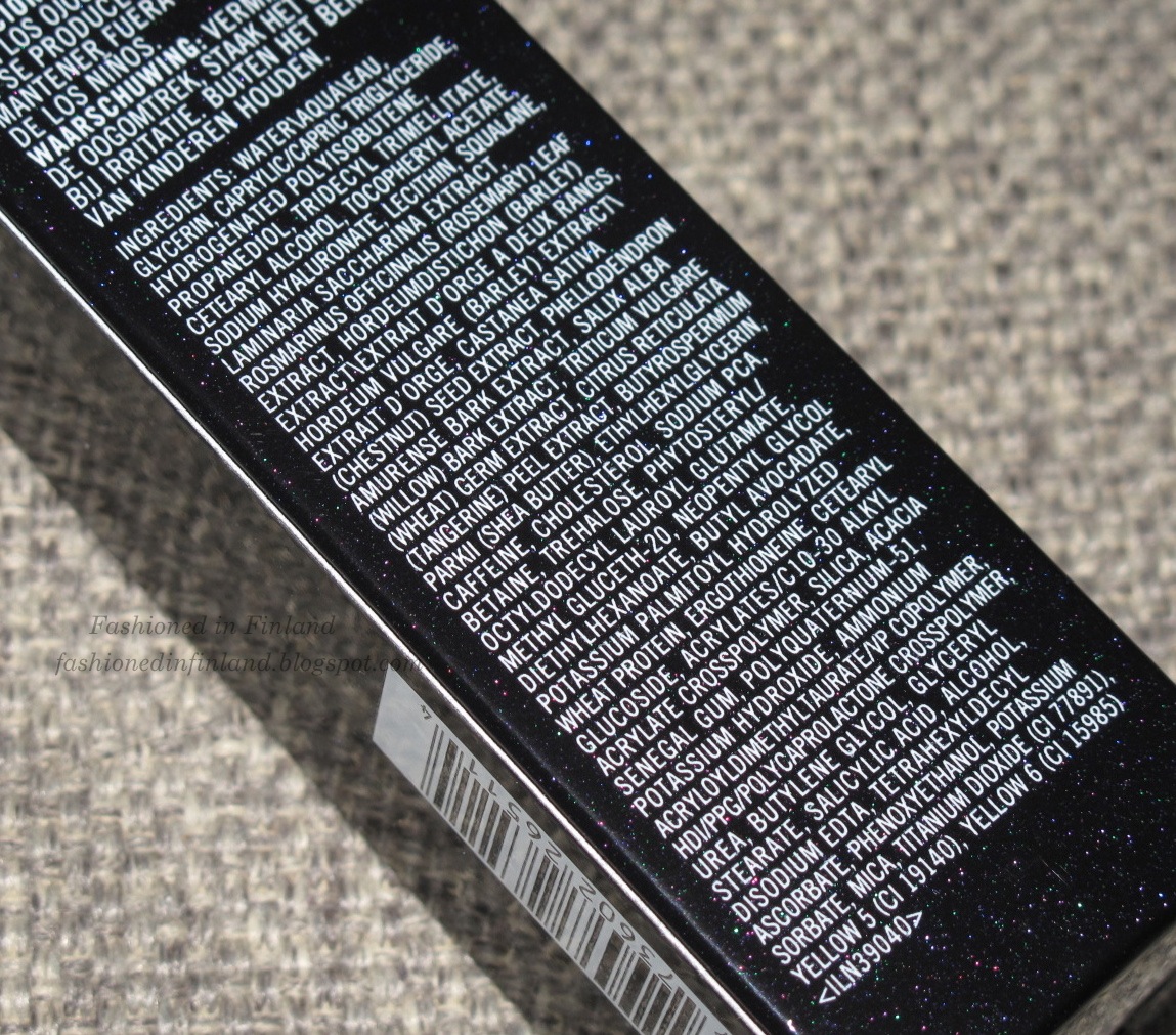 MACin uusin primer, taitaa toimia ihollani parhaiten kaikista testaamistani primereista! Antaa hieman hohtoa iholle (ei kuitenkaan liikaa vaan ihan luonnollisesti) ja ihosta tulee todella raikkaan näköinen. Eniten tykkään tuotteen koostumuksesta: ei tunnun silikoniselta vaan enemmänkin hoitavalta seerumilta! Koostumus on kevyt, raikas ja helposti levittyvä. Inci on alla (kuvan voi kilikata suuemmaksi). Itse en äkkiseltään silikoneja tästä löytänyt mutta inci guruksi en voi itseäni kutsua. Inci-kommentteja otan siis mieluusti vastaan :D Toimii myös mineraalimeikkipohjan alla. Googlettelin vähän pysyvyystietoja ja siinäkin on kehuttu... Sen verran uusi tuote, ettei taida paljoa arvoita kyllä vielä löytyäkään. Minulla tosiaan meikki pysyy hyvänä ilman primeriäkin.